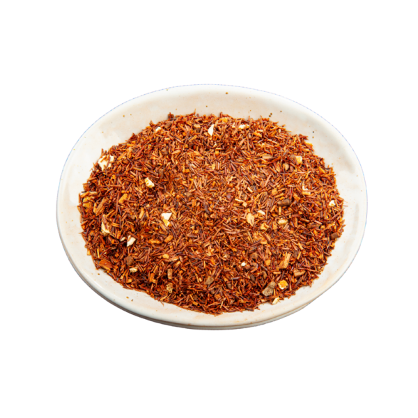 Rooibos mezclado con corteza de naranja, canela de Ceylán y clavo de Madagascar. Dulce y especiado, con ese toque cítrico de la naranja. Sabroso y relajante, el acompañante perfecto para esa tarde de lectura y siesta.